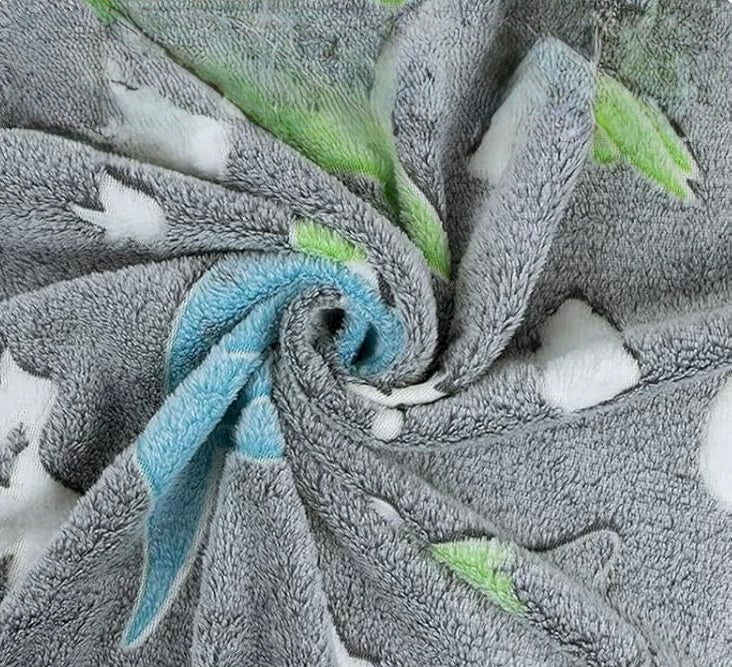 Transformez le coucher en aventure avec notre couverture phosphorescente pour bébé et enfant Dinosaure Grise ! Ultra doux et moelleux, ce plaid crée un moment apaisant grâce à ses motifs qui brillent doucement dans l’obscurité après quelques minutes sous la lumière.
