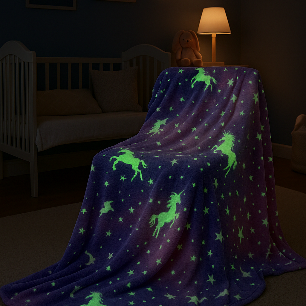 💡 Astuce magique : exposez la couverture à une source lumineuse pendant 20 à 30 minutes, puis éteingnez les lumières… les motifs apparaissent en douceur et illuminent la nuit de votre enfant !
