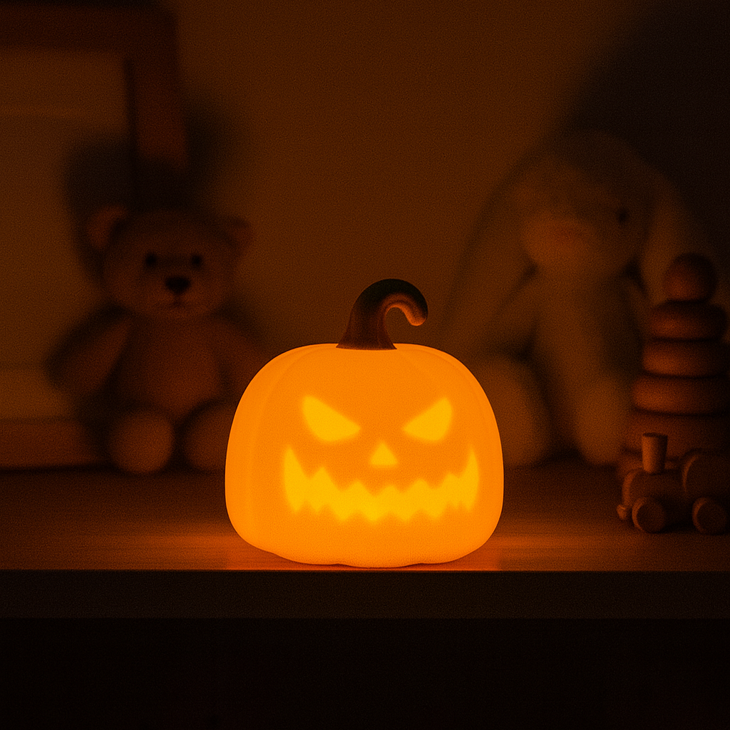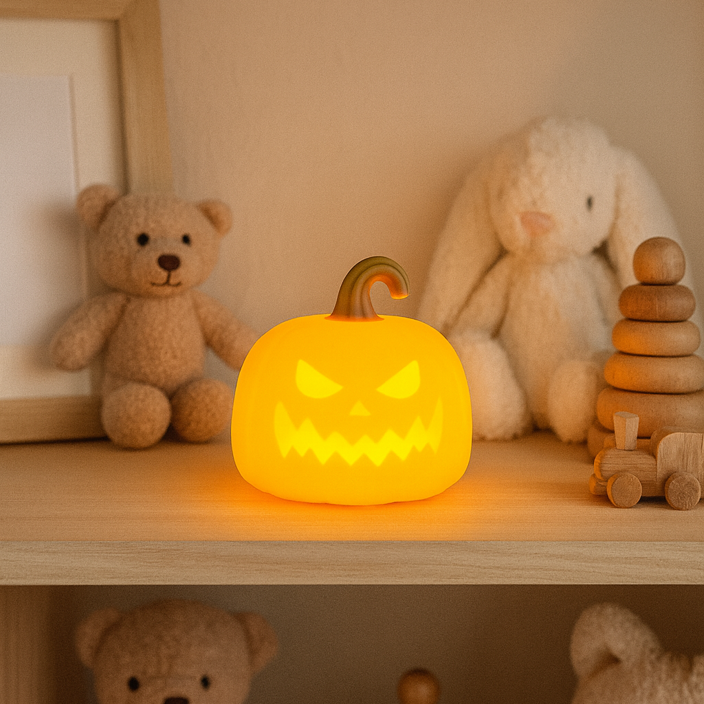 Transformez la chambre de votre enfant en un petit univers d’Halloween avec notre veilleuse citrouille ! Toute ronde et orange, elle plaira aux petits fans de frissons tout doux. Fabriquée en silicone souple, elle diffuse une lumière chaude ou colorée, parfaite pour créer une ambiance malicieuse tout en gardant l’esprit Halloween.